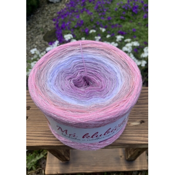 Vlákno je složeno ze 3 nitek s postupnými a jemnými barevnými přechody a 1 nitkou bílého velmi jemného lurexu.